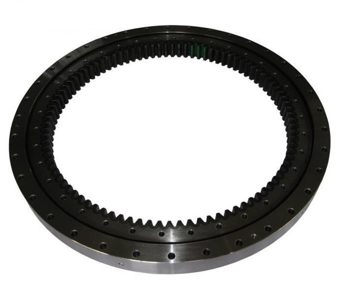单排交叉滚柱式回转支承,由两个座圈组成,结构紧凑、重量轻、制造精度高,装配间隙小,对安装精度要求高,滚柱为1:1交叉排列,能同时承受轴向力,倾翻力矩和较大的径向力,被广泛地用于起重运输、工程机械和军工产品上。