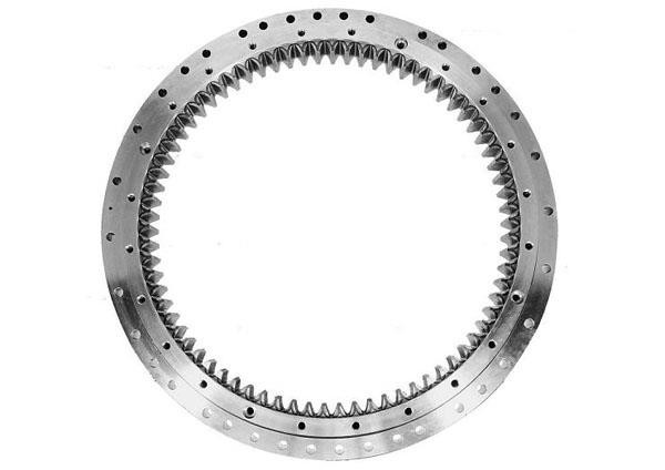 单排四点接触球式回转支承由两个座圈组成,结构紧凑,重量轻,钢球与圆弧滚道四点接触,能同时承受轴向力,径向力和倾翻力矩,回转式输送机,焊接操作机,中小型起重机和挖掘机等工程机械均可选用。