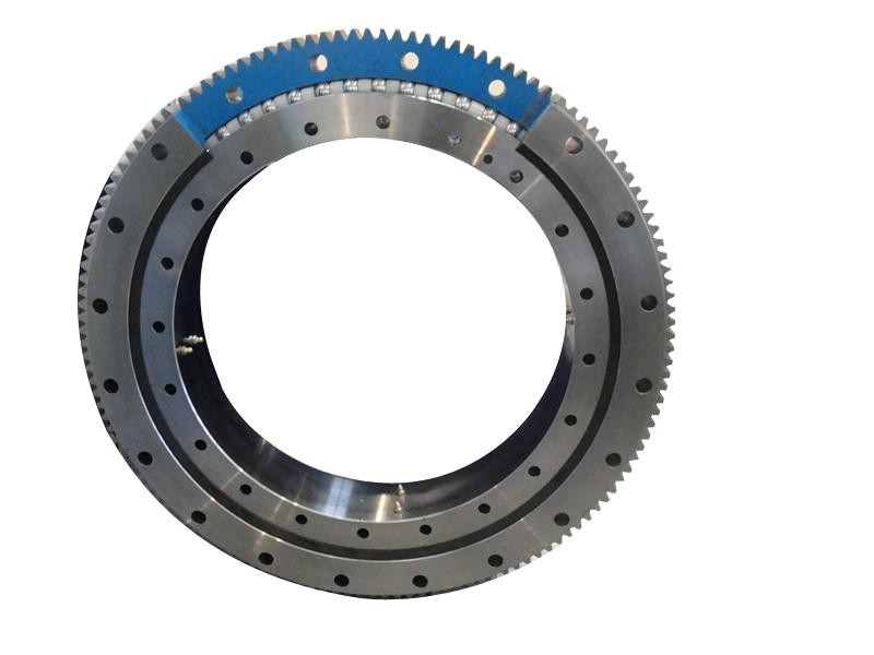 单排四点接触球式转盘轴承由两个座圈组成,结构紧凑、重量轻、钢球与圆弧滚道四点接触,能同时承受轴向力、径向力和倾翻力矩。回转式输送机、焊接操作机、中小型起重机和挖掘机等工程机械均可选用。