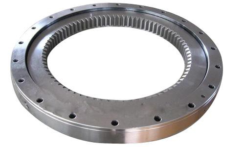 单排四点接触球式回转支承由两个座圈组成,结构紧凑、重量轻、钢球与圆弧滚道四点接触,能同时承受轴向力、径向力和倾翻力矩。回转式输送机、焊接操作机、中小型起重机和挖掘机等工程机械均可选用。